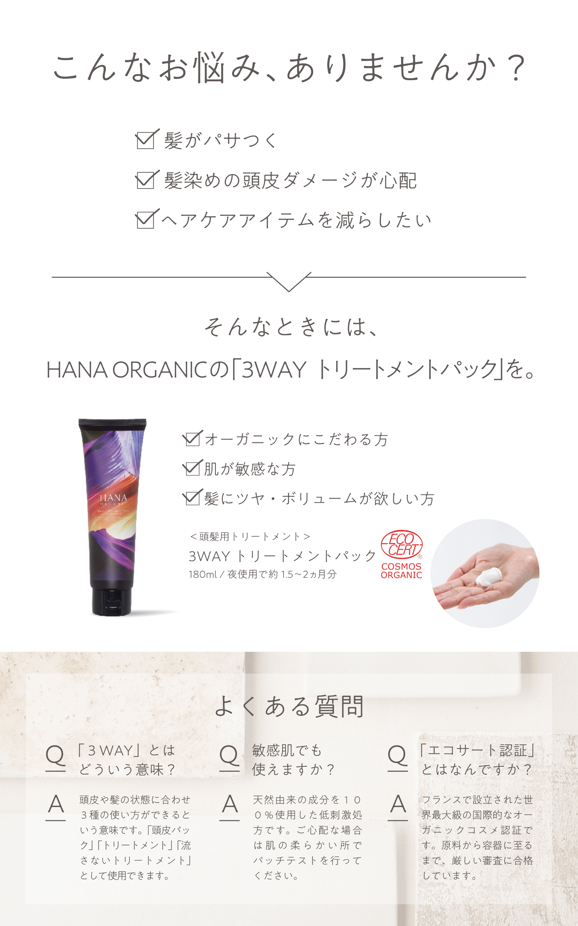 Hana Organic - 3WAYトリートメントパック 180ml