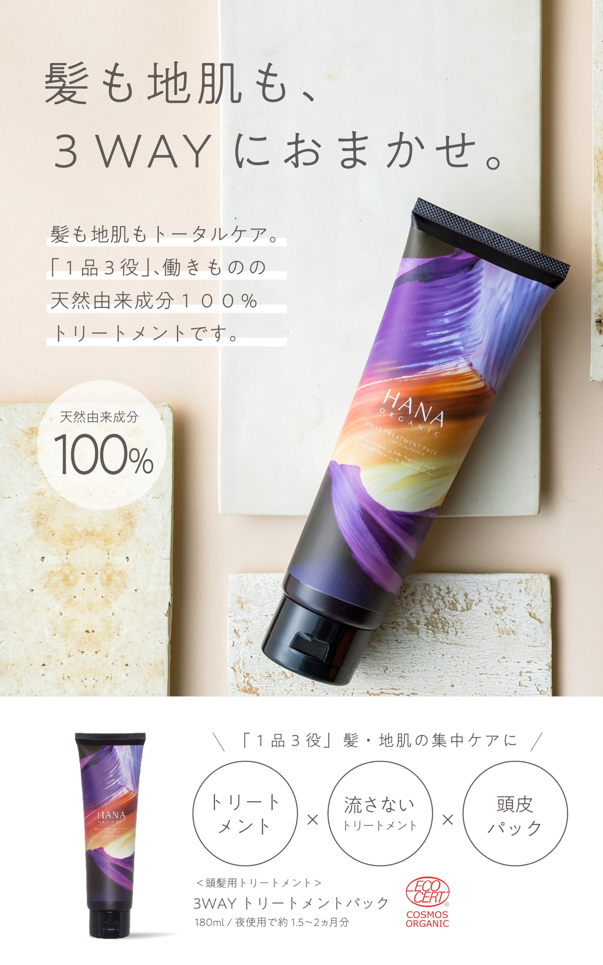 そんな⼥性たちの複雑で悩ましい⼥⼼に寄り添い、オーガニックスキンケアブランドとしてできることは何かを追求し誕⽣したのがHANA オーガニック のScalp & Haircare シリーズです。デイリーケアで、今も未来も美しく豊かな髪を叶えます。